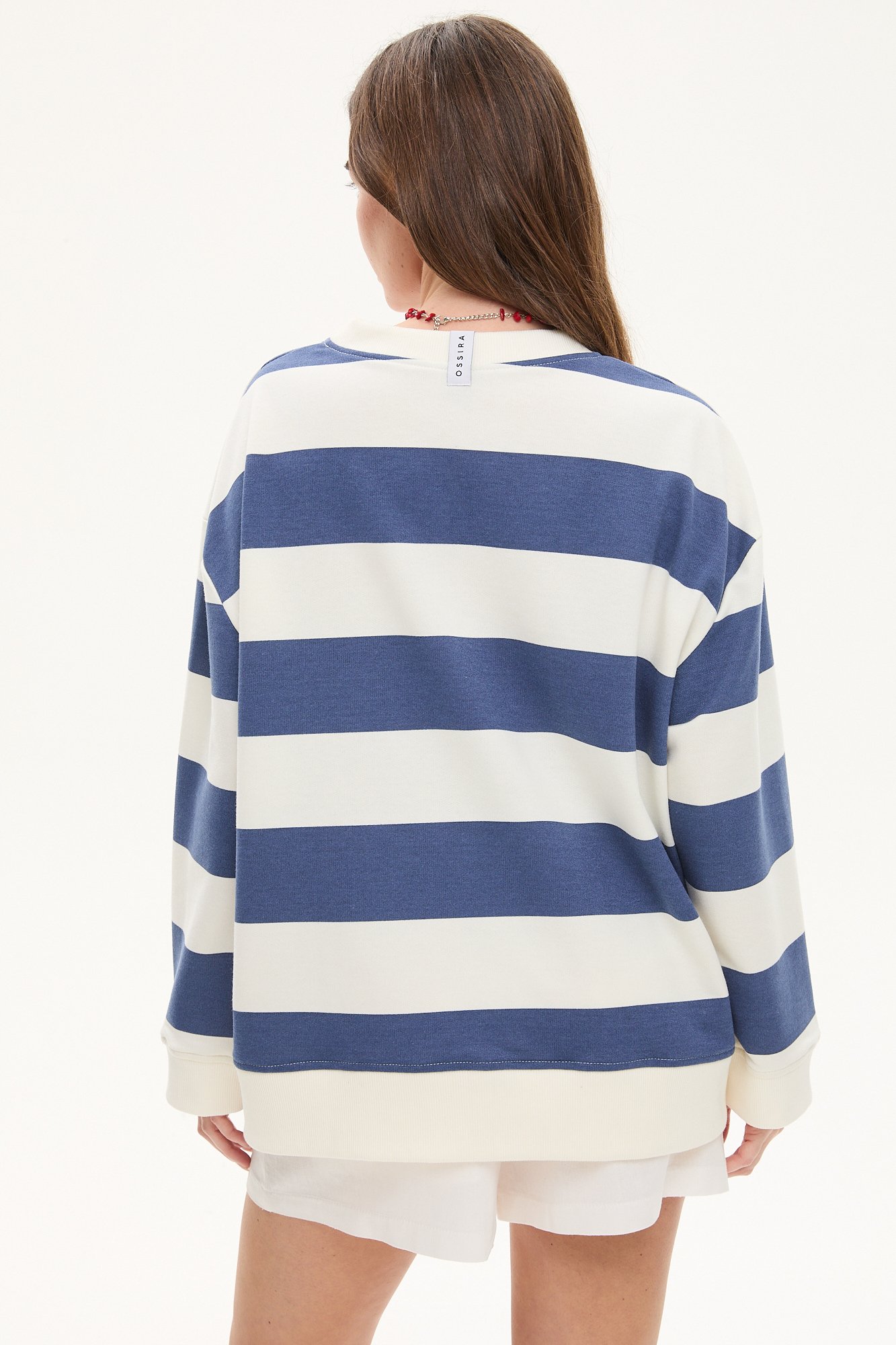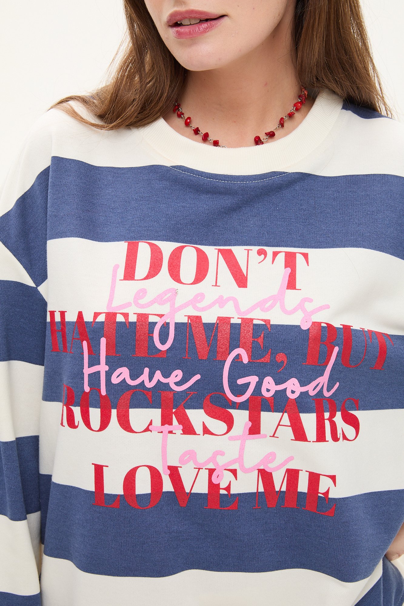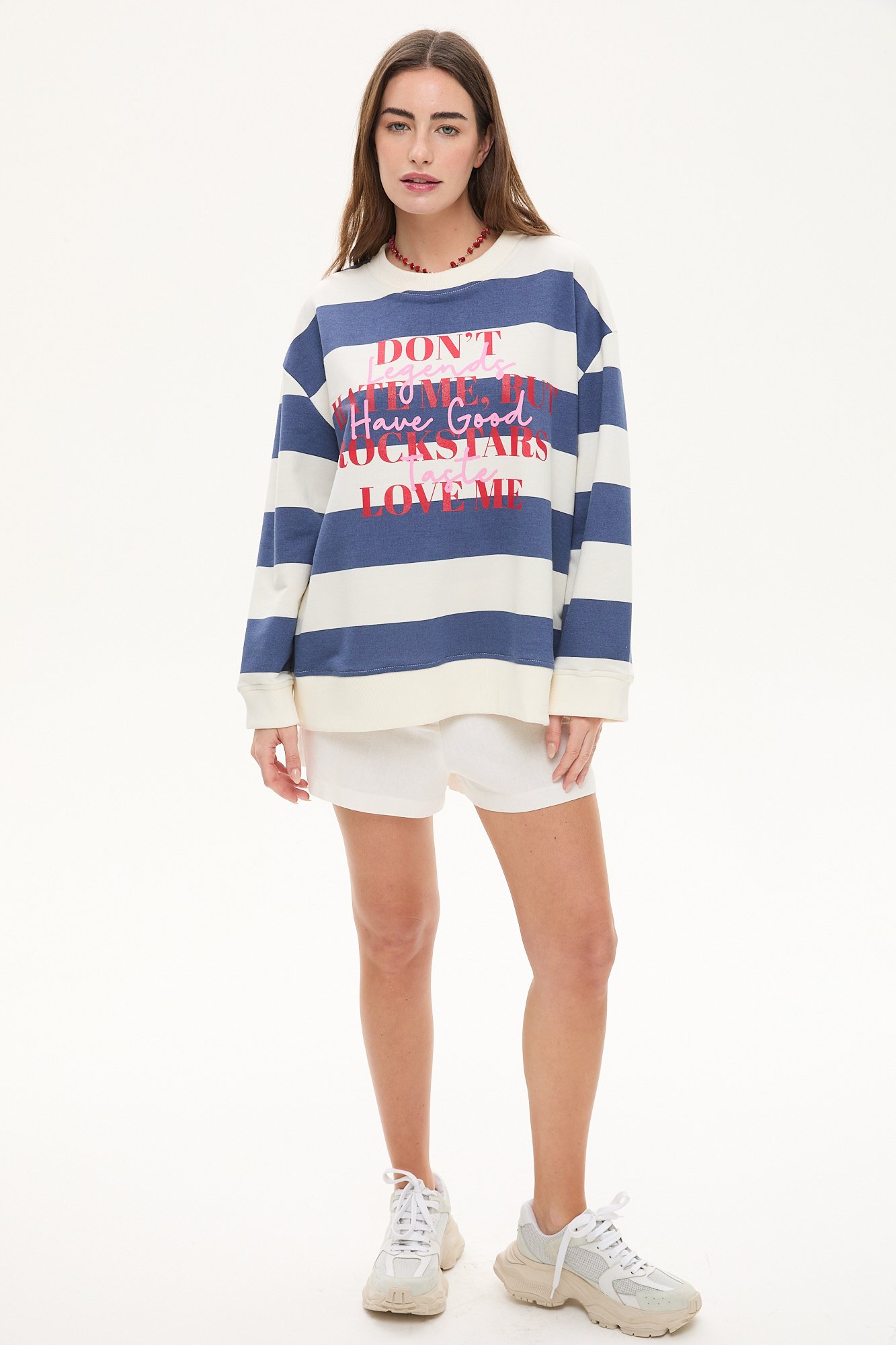 BUZO DE ALGODÓN RUSTICO RAYADO CON ESTAMPA EN COLOR. LARGO HASTA CADERA. 100% ALGODÓN.