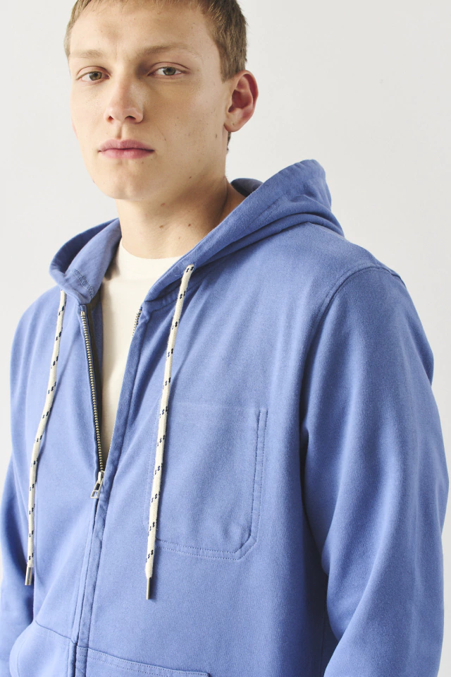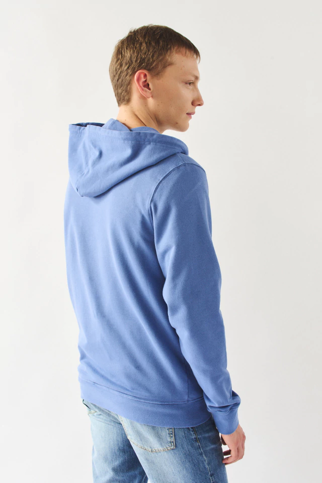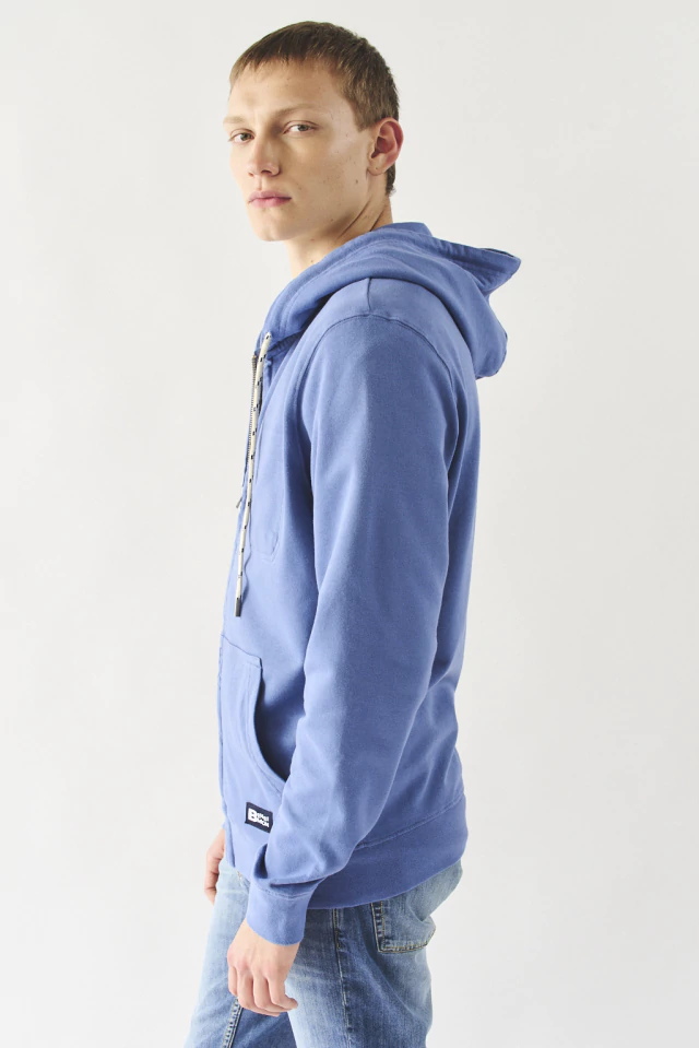 Buzo canguro con calce regular con capucha, cierre niquel, cordon y etiqueta bordada. Vivo interno a contratono.
