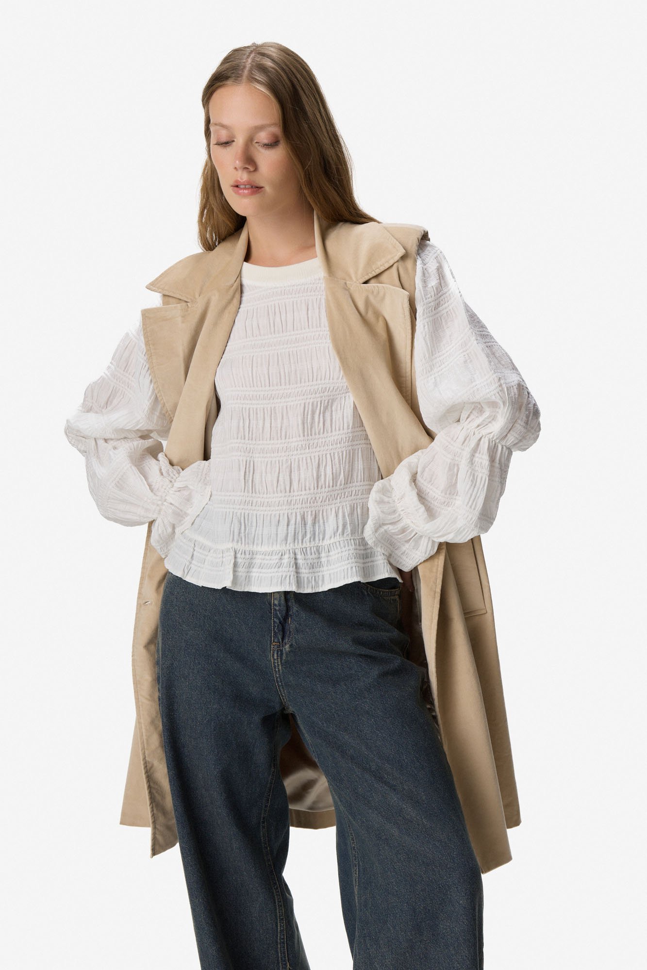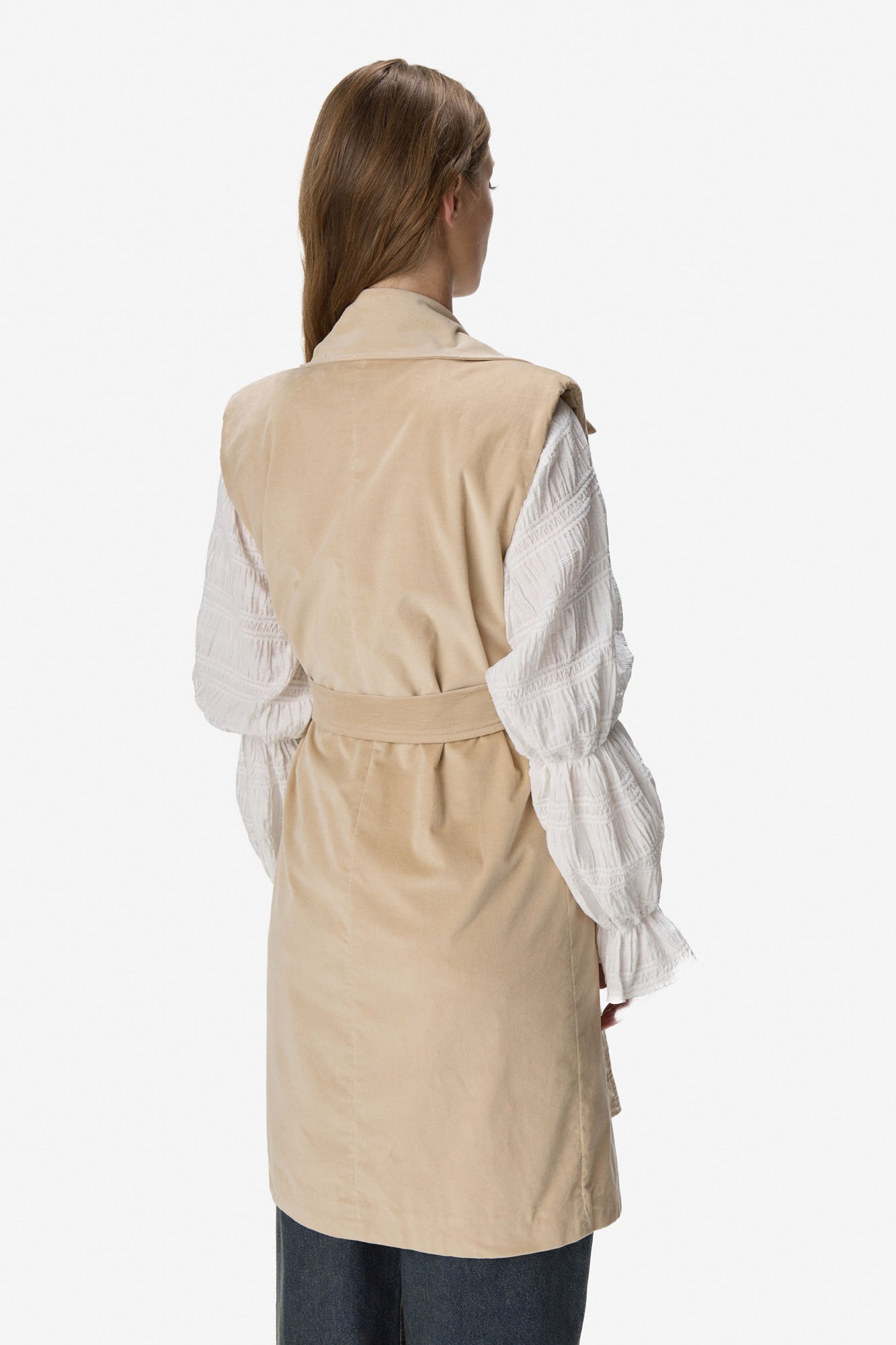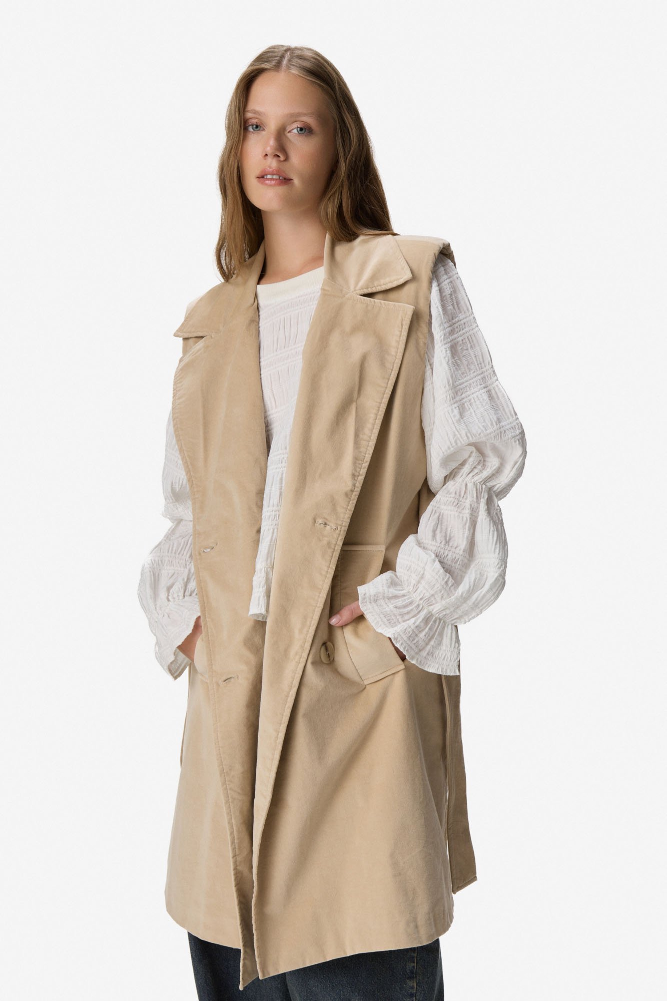 Chaleco largo de pana, de diseño abierto y calce relajado. Con solapas amplias y bolsillos laterales, es una prenda versátil que aporta textura y estilo a cualquier look. Ideal para superponer en media estación. 88% poliéster 12% viscosa.