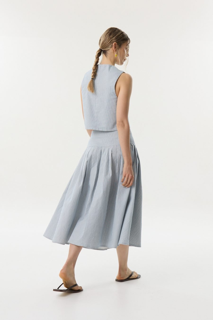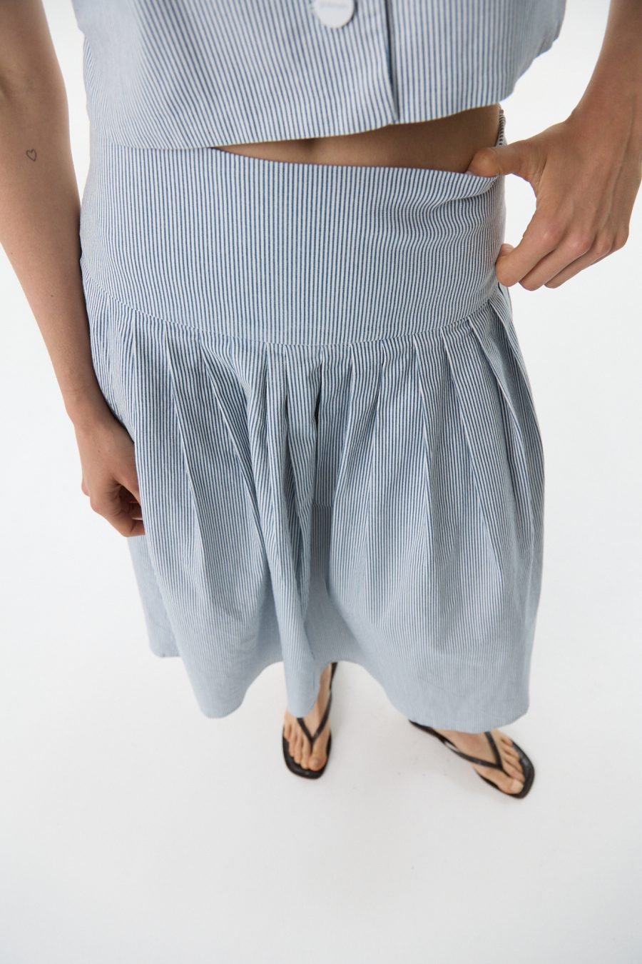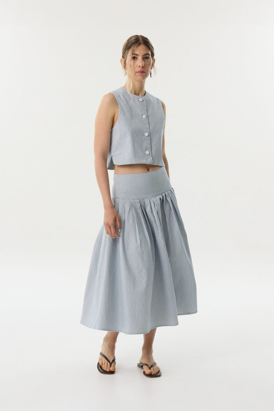 Esta no es una falda, es una obra de arte. No tiene temporada ni tendencia, es puro amor por las siluetas dramáticas y la conjunción de la prenda y el cuerpo al moverse. Falda tableadas de gabardina de alta calidad. Cintura y cadera planas que dan lugar a un sinfín de perfectas tablas que caen con gracia dando a tu atuendo el protagonismo que queres. Combinala con su top para un look de fiesta o con el chaleco para un look urbano. Va con remeras o camisas, o sea, la versatilidad Gusmán en toda su expresión.