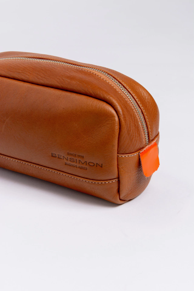 Neceser personal de cuero con cierre niquel y tira de acuerdo a contratono.