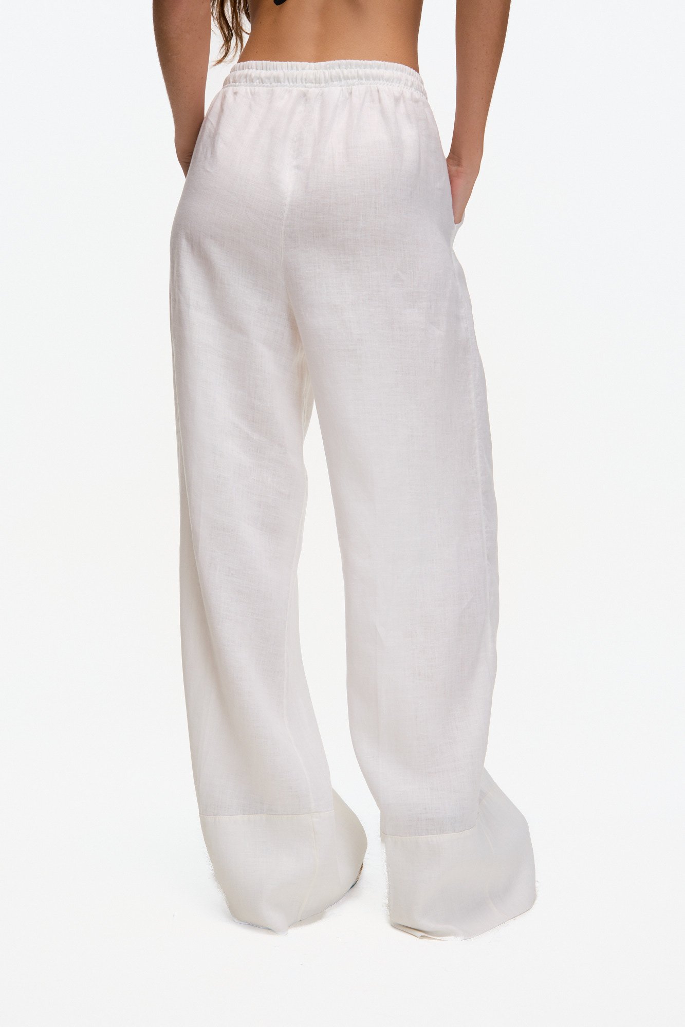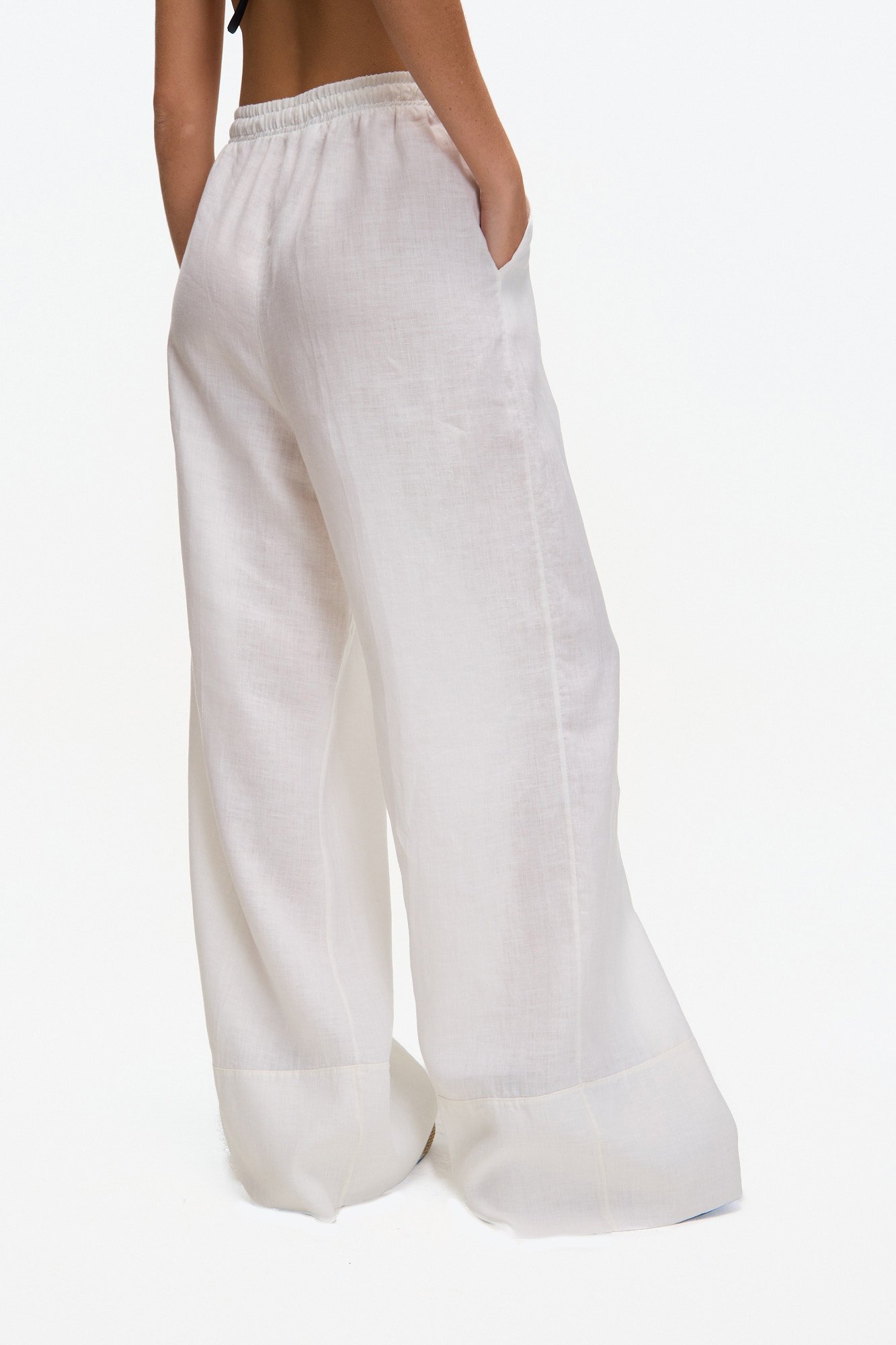 PANTALÓN OSSIRA DE LINO DE CALCE RELAJADO, RECTO QUE SE ENSANCHA EN LA BOTAMANGA. ELASTICO EN LA CINTURA Y BOLSILLOS EN LATERAL.