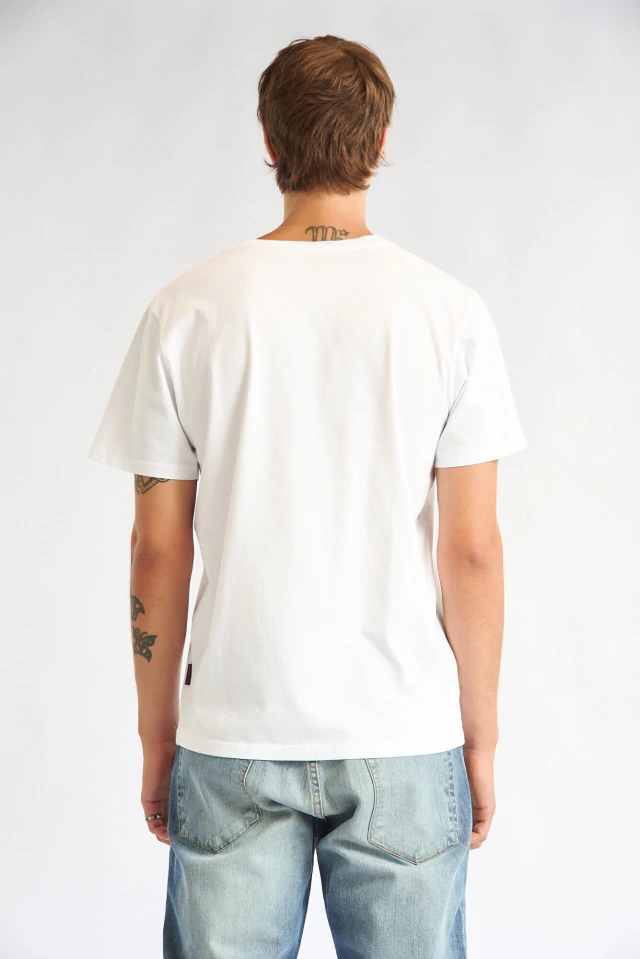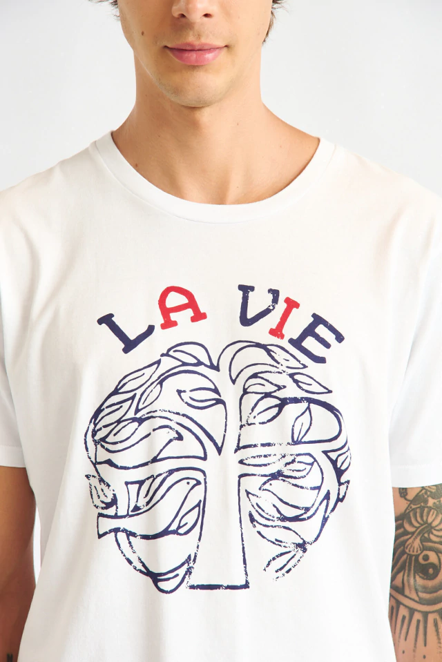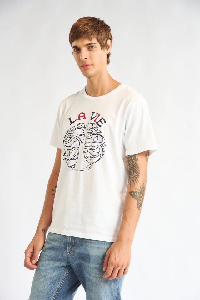 Remera con calce regular manga corta, con cuello redondo y estampa en el frente.