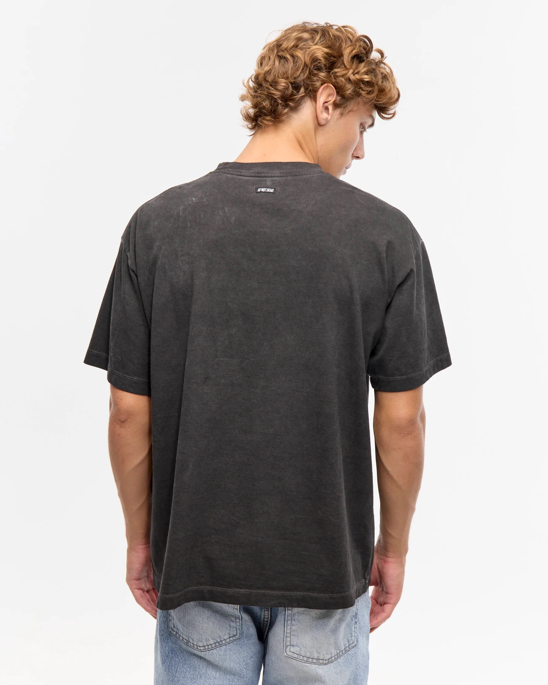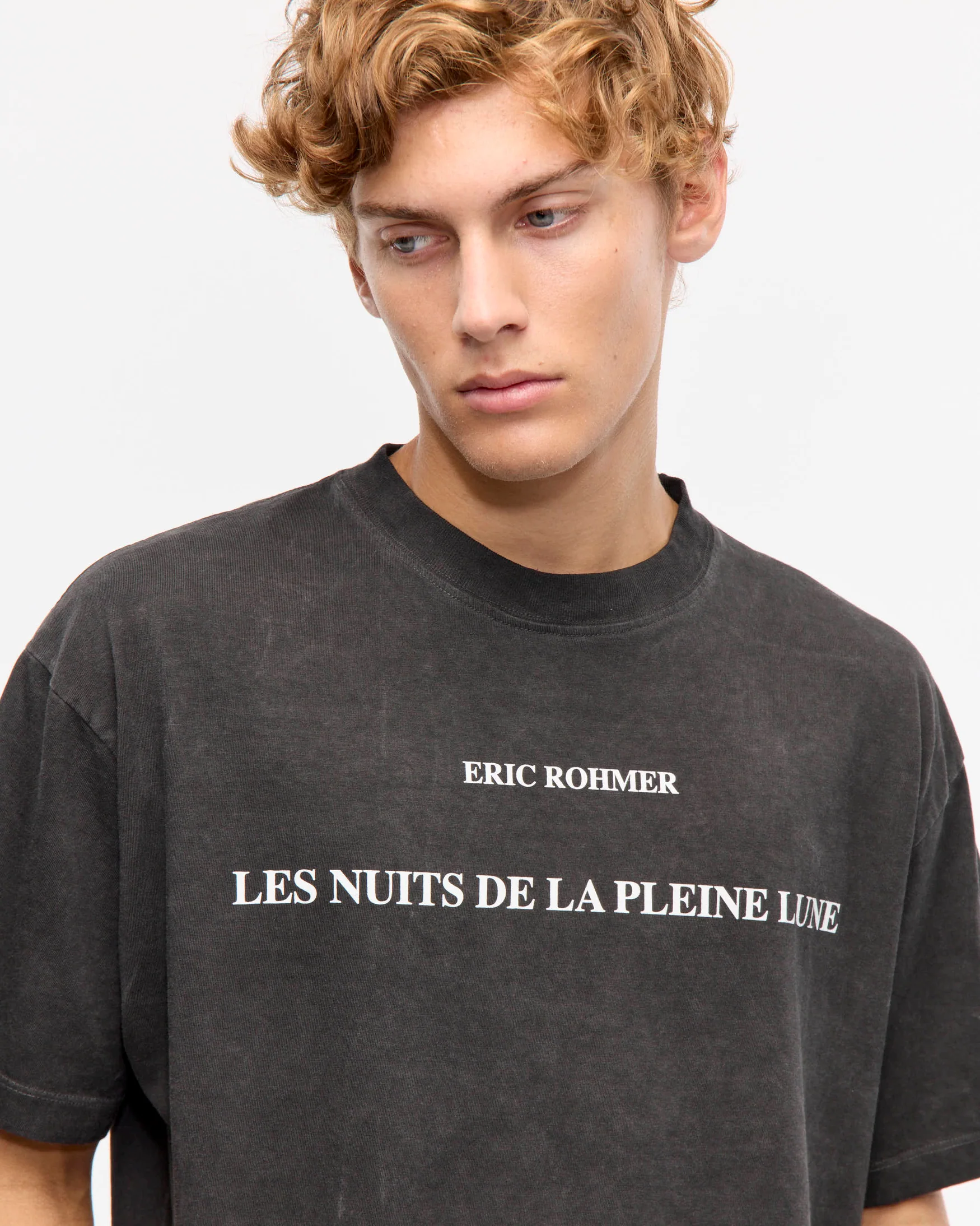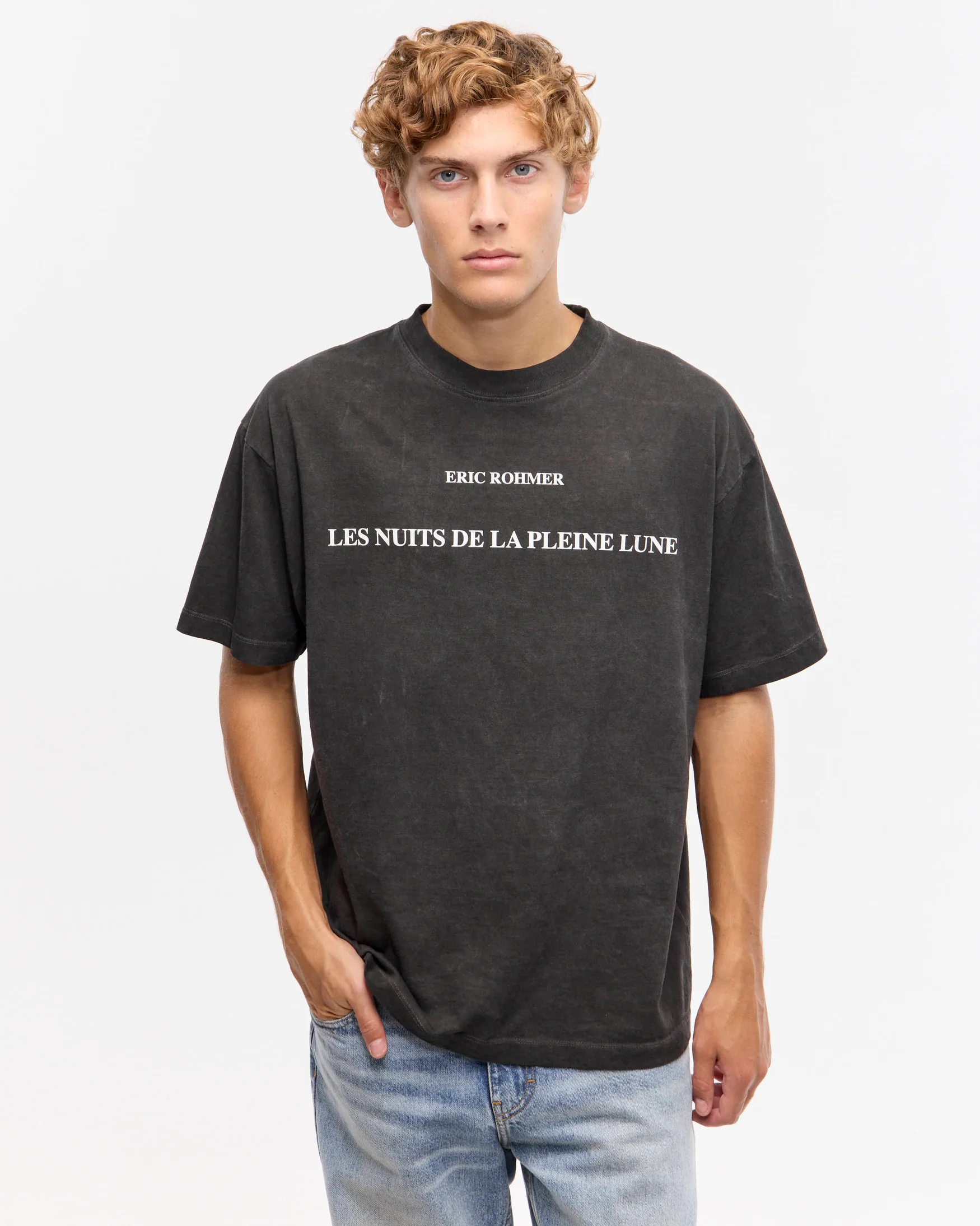 Remera manga corta de cuello redondo y calce oversize en jersey de algodón. Teñido y gastado fade en prenda y leves roturas. Estampa ´LES NUITS DE LA PLEINE LUNE´ en delantero. Posee grifa de marca en la espalda.