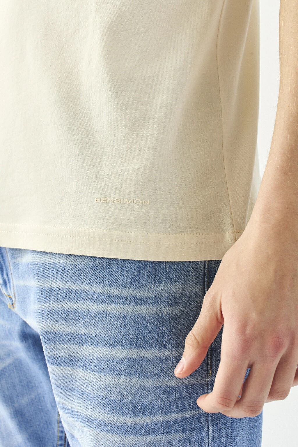 Remera con calce regular confeccionada en algodón pima 100%. Cuello redondo y pequeña estampa en el frente.