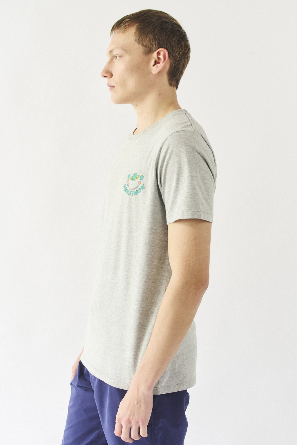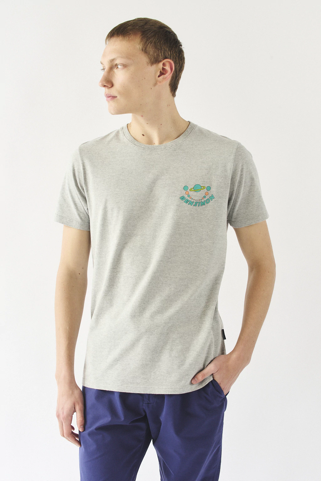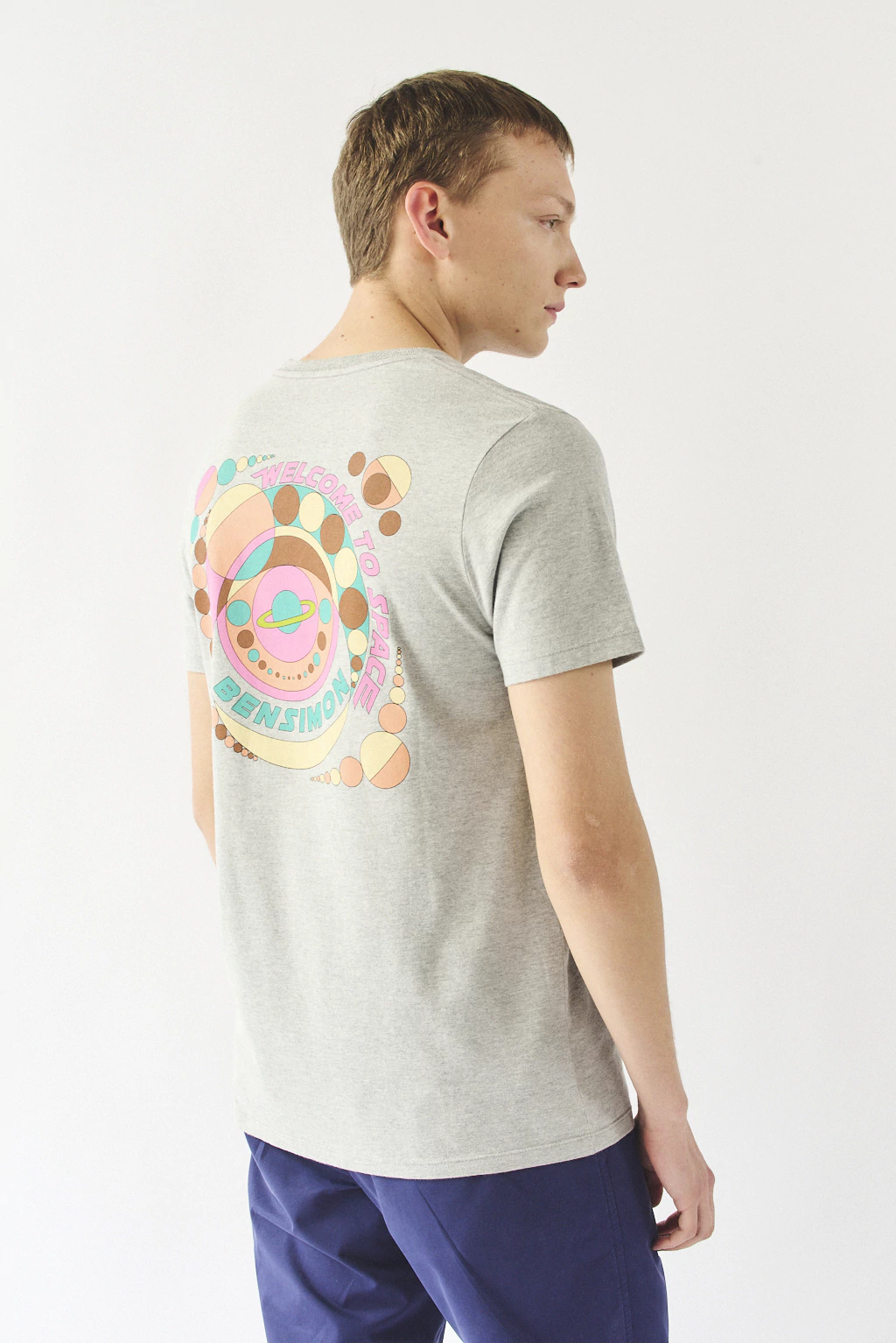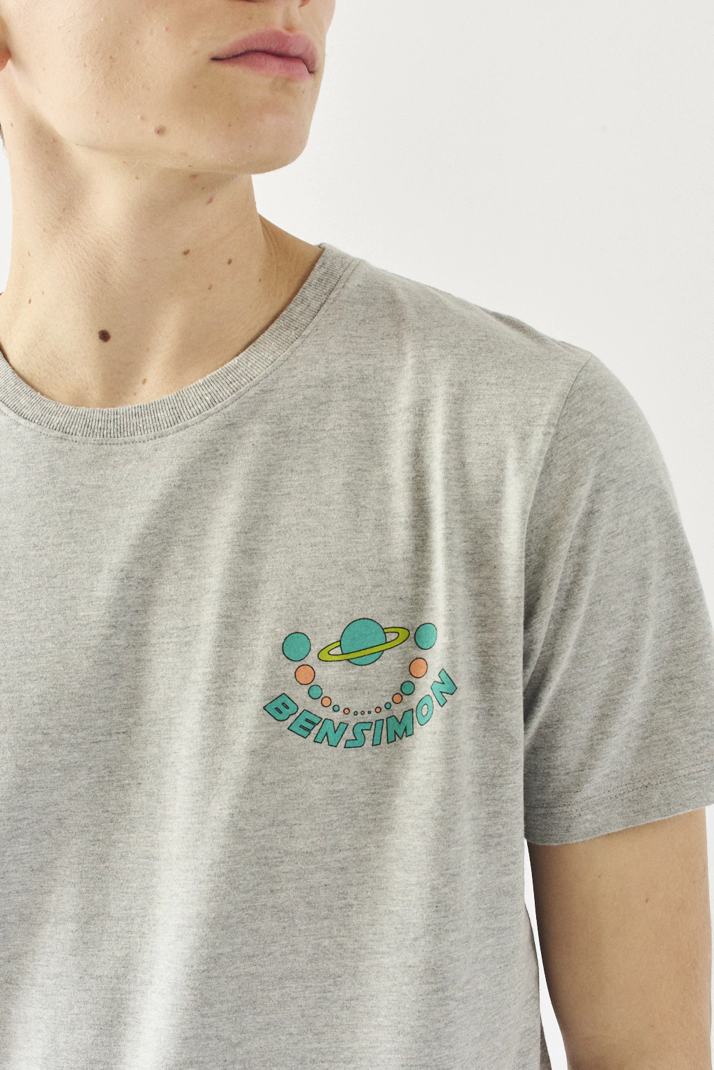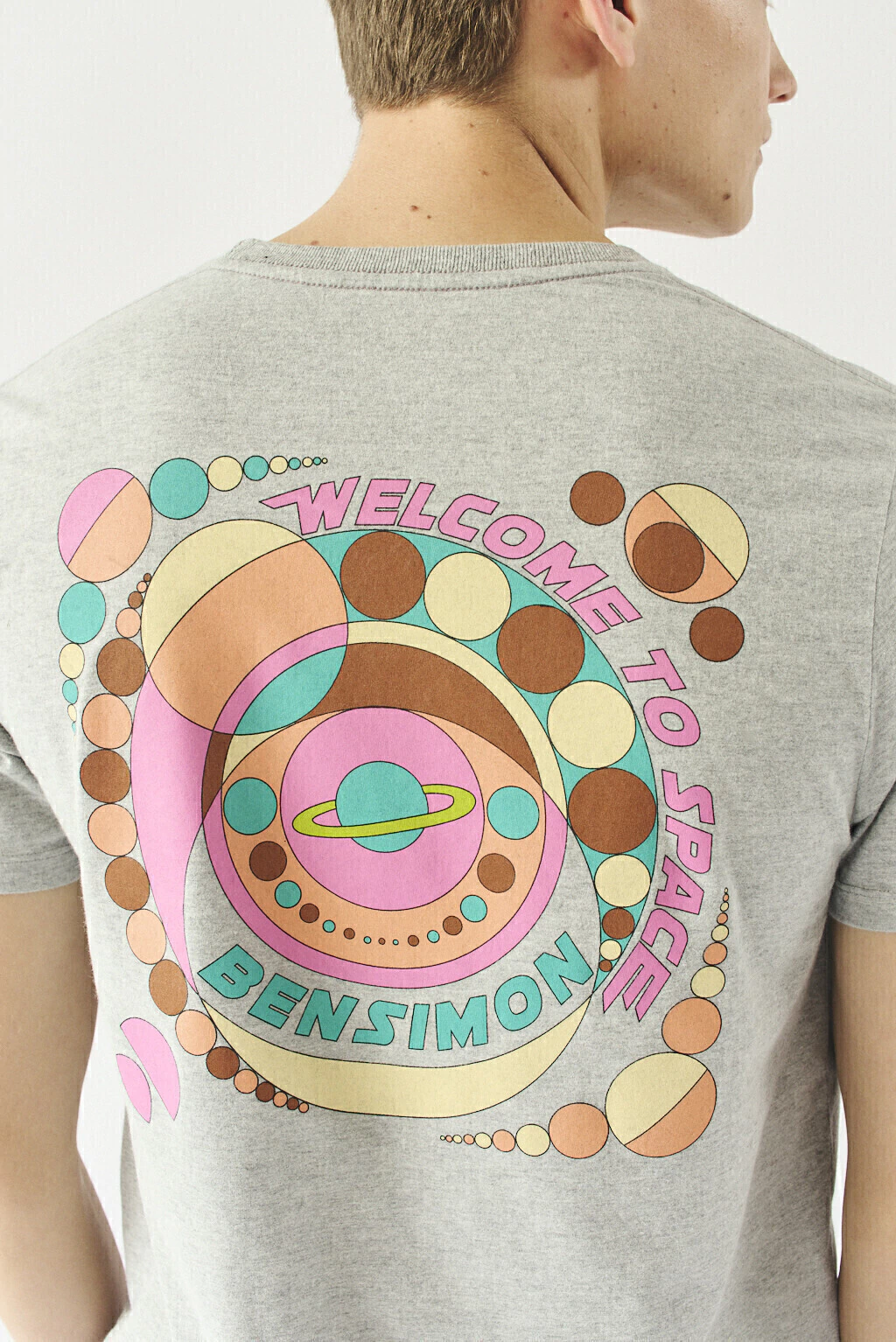 Remera con calce regular manga corta, con cuello redondo y estampa en el frente y la espalda.