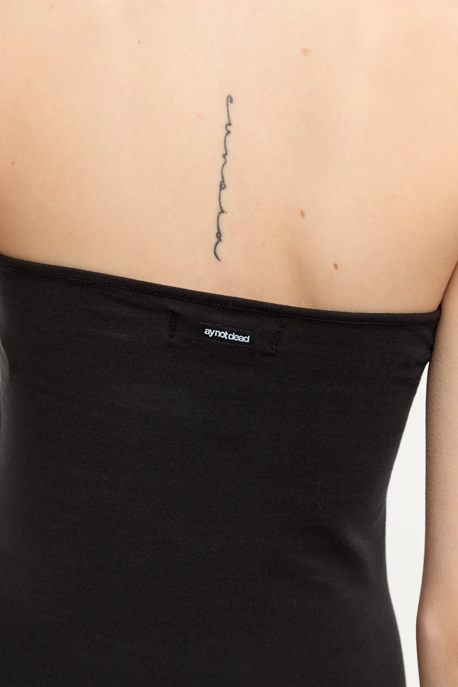 Top confeccionado en algodón con elastano. De escote halter, calce fitted y largo a la primera cadera. Con detalle de tachas en el recorrido del escote.